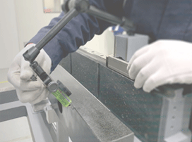 礦物鑄件又稱“人造大理石”“樹脂混凝土”,是用天然石碎料/鵝卵石、黃砂等為骨料,改性環(huán)氧樹脂等為膠凝材料,加入部分填料和外加劑經(jīng)過(guò)混合攪拌、振動(dòng)密實(shí)而形成的一種新型高分子復(fù)合材料。其具有的復(fù)雜外型的成型能力和整合能力,高精度,良好的吸震性、熱穩(wěn)定性及耐腐蝕性等優(yōu)勢(shì)。